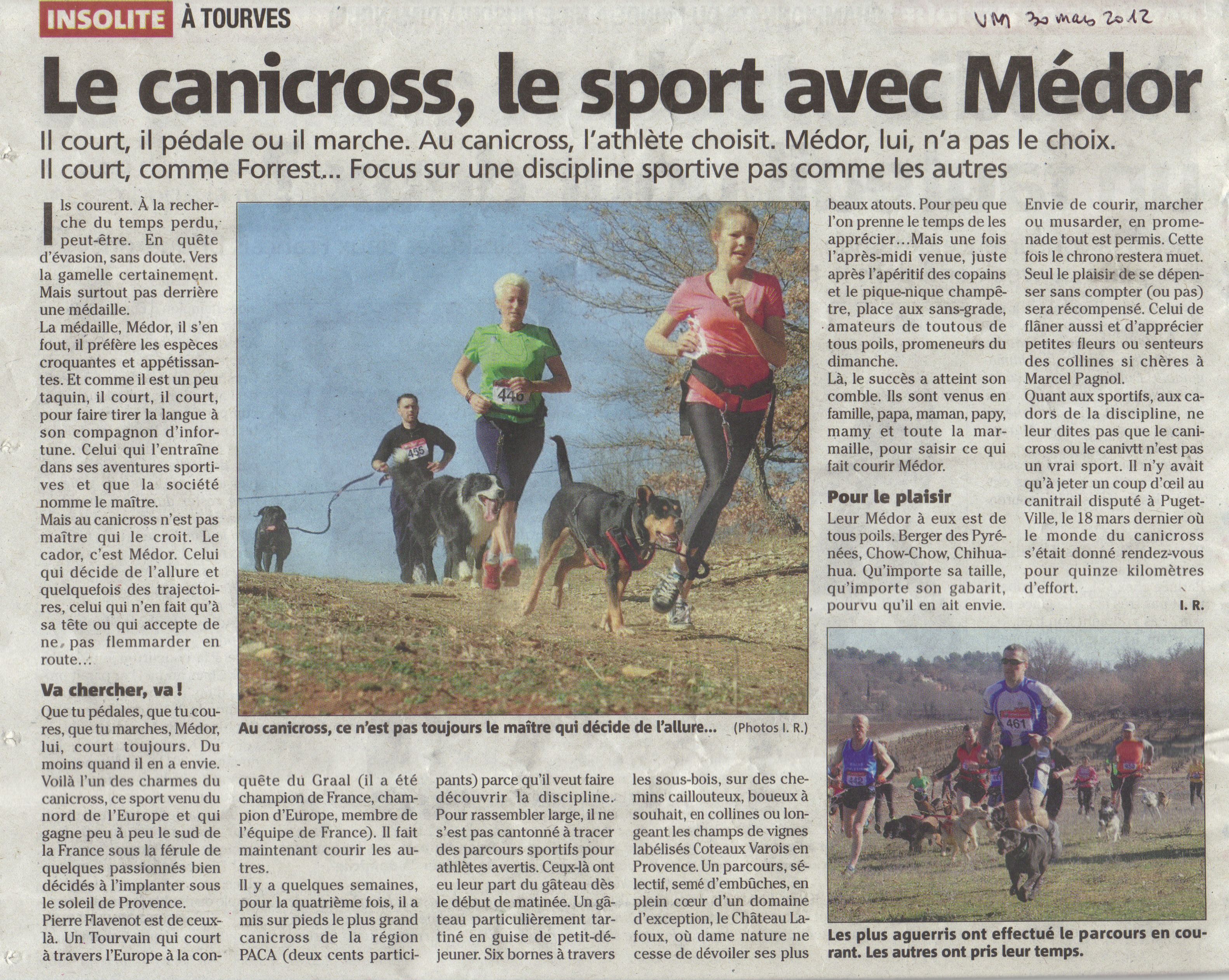 Article paru dans les pages sportives départementales sur le canicross.