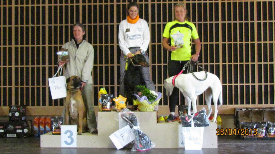 Lors de la finale des "Chiens d'Or" à Izeaux, en canicross Patricia a terminé 1ère avec Bi One et donc "Chien d'or 2012"